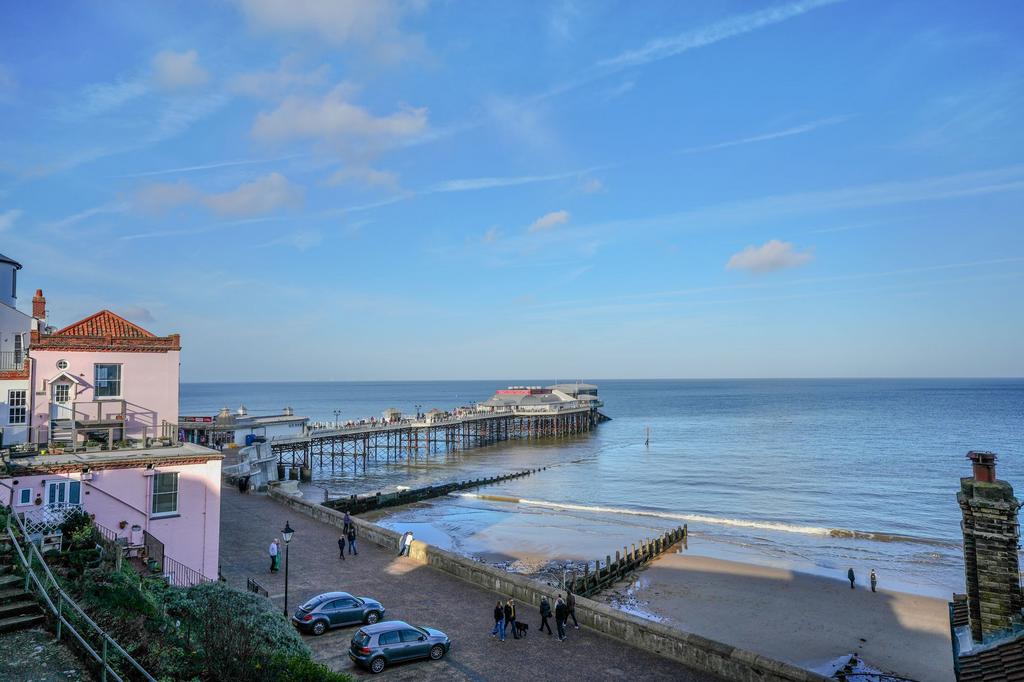 This truly impressive two-bedroom apartment, located in the highly popular De Vere Court, is beautifully positioned in the heart of the vibrant seaside town of Cromer. Elevated above the seafront, it enjoys uninterrupted, panoramic views across the sea and towards the iconic Cromer Pier, making its location truly special. Situated on the ground floor, the property welcomes you with a notably spacious entrance hall that doubles as a dining area, offering a versatile space with potential for multiple uses depending on your needs. From here, an archway leads to the well-appointed kitchen with integrated appliances. Glazed double doors open into a generous and light-filled lounge, where double-glazed patio doors lead onto an exceptional balcony, perfect for taking in the fresh sea air and the stunning coastal scenery.