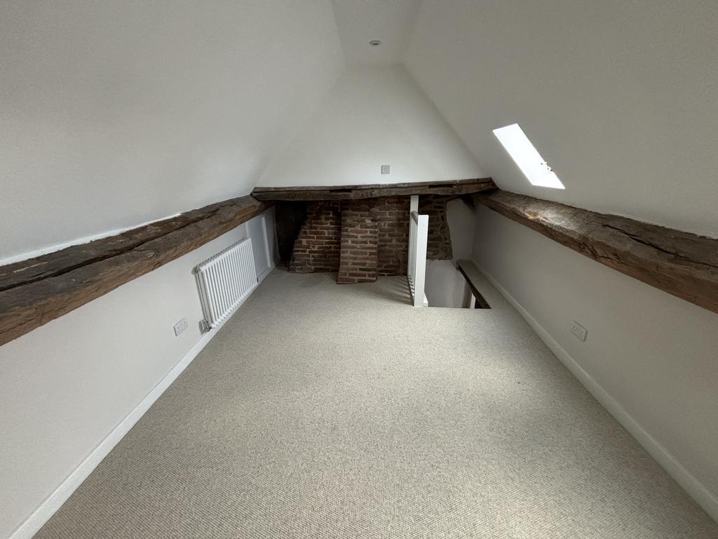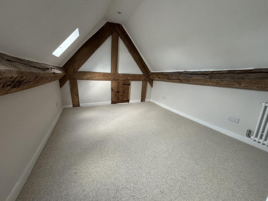 Bedroom 3: Double bedroom with exposed beams to eaves, exposed chimney breast, roof lights, radiator and fitted carpet.