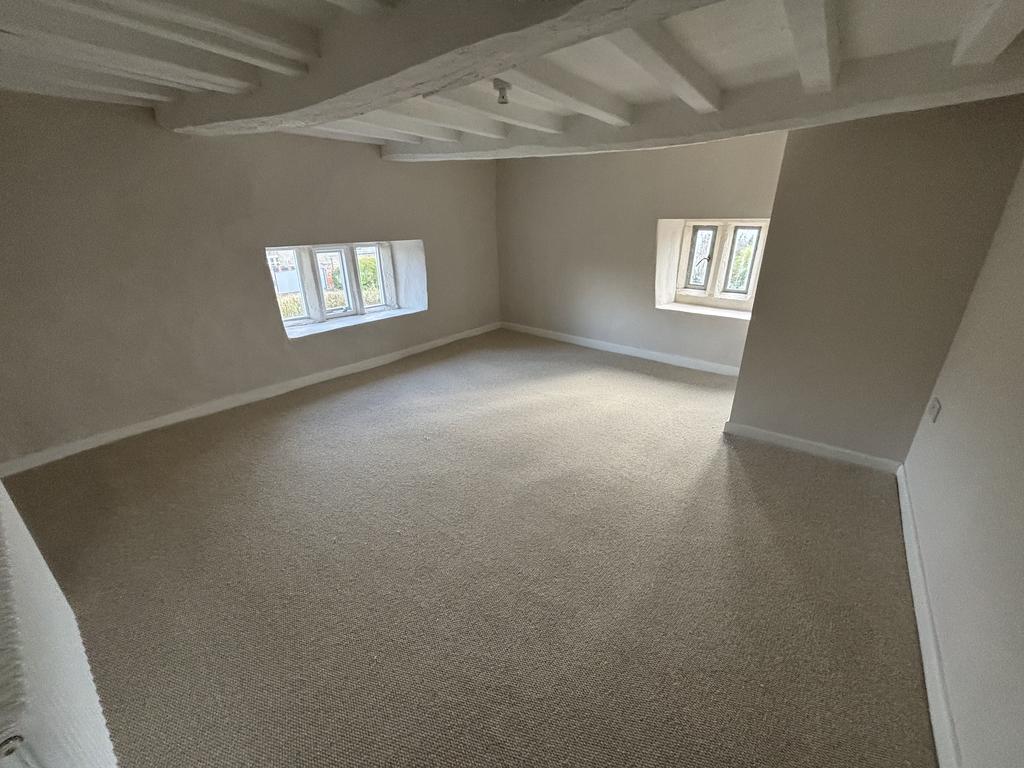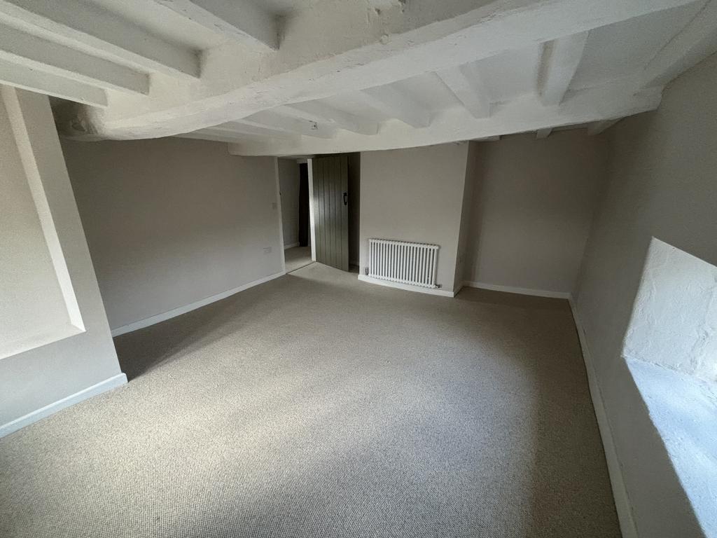 Bedroom 2: Large double bedroom with beamed ceiling, radiator and fitted carpet.