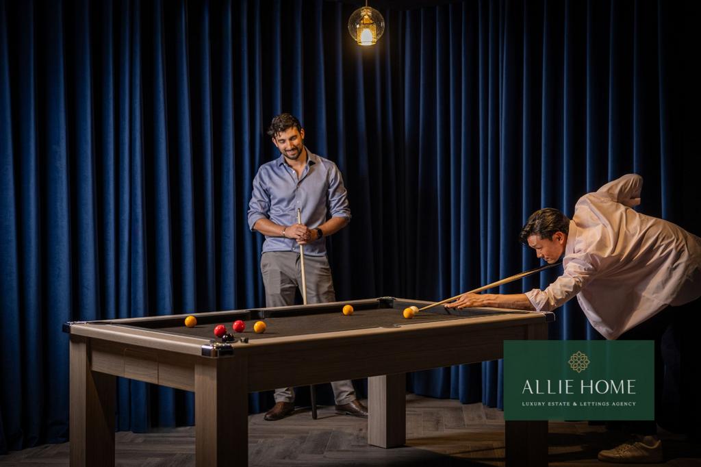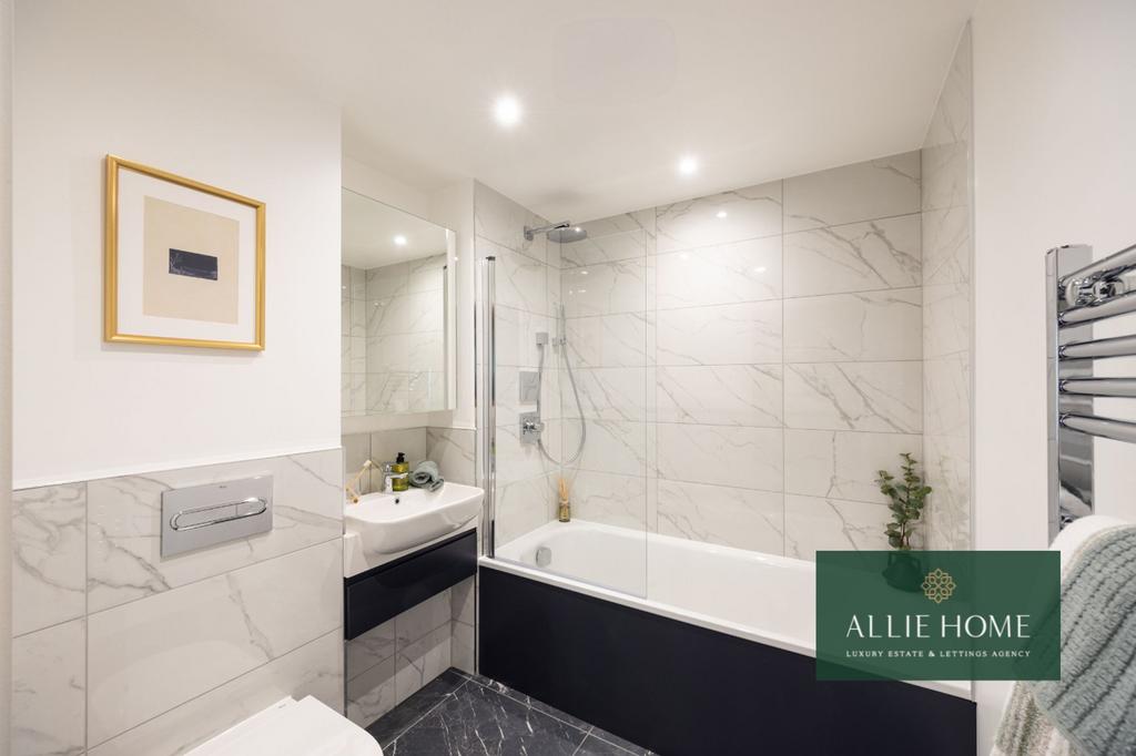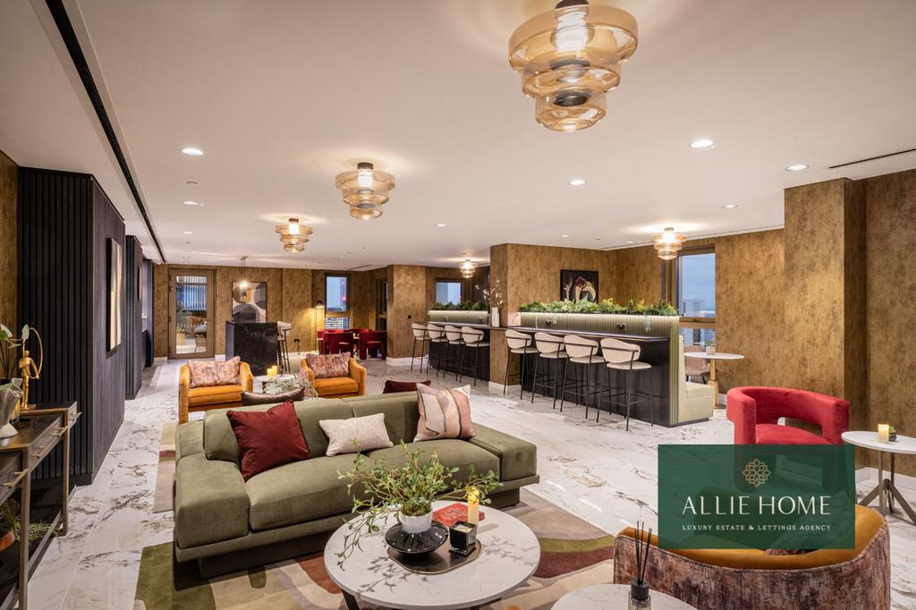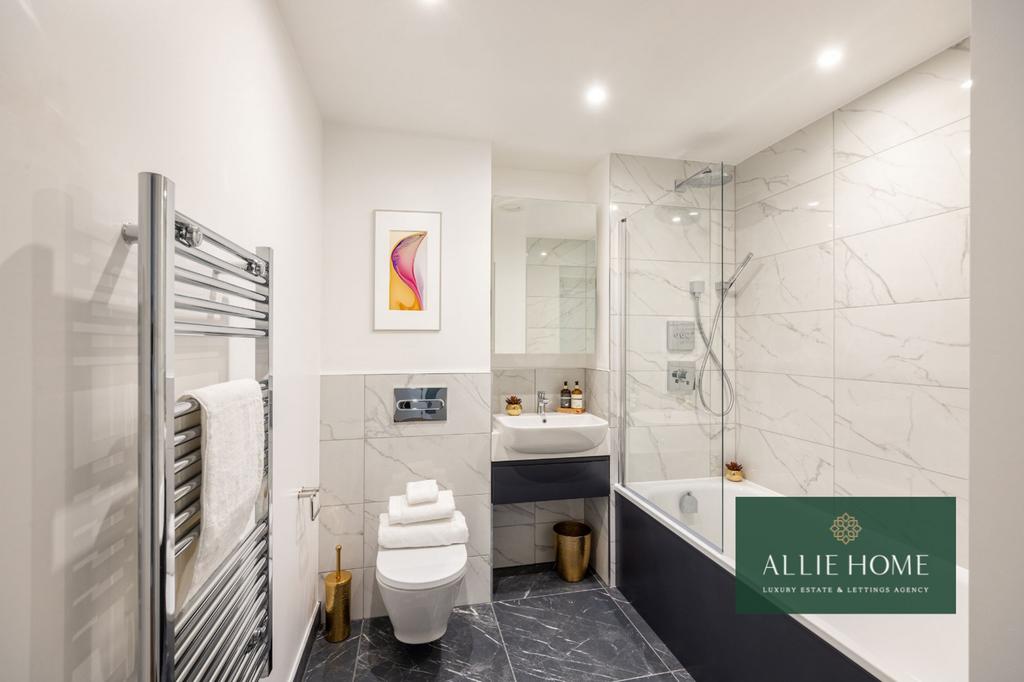 Designed for modern lifestyles, the apartment features bespoke fully-integrated kitchens with Siemens appliances, marble-effect splashbacks, and composite stone worktops. Engineered timber-effect flooring, floor-to-ceiling windows, and underfloor heating in all bathrooms ensure a blend of style, comfort, and warmth throughout.