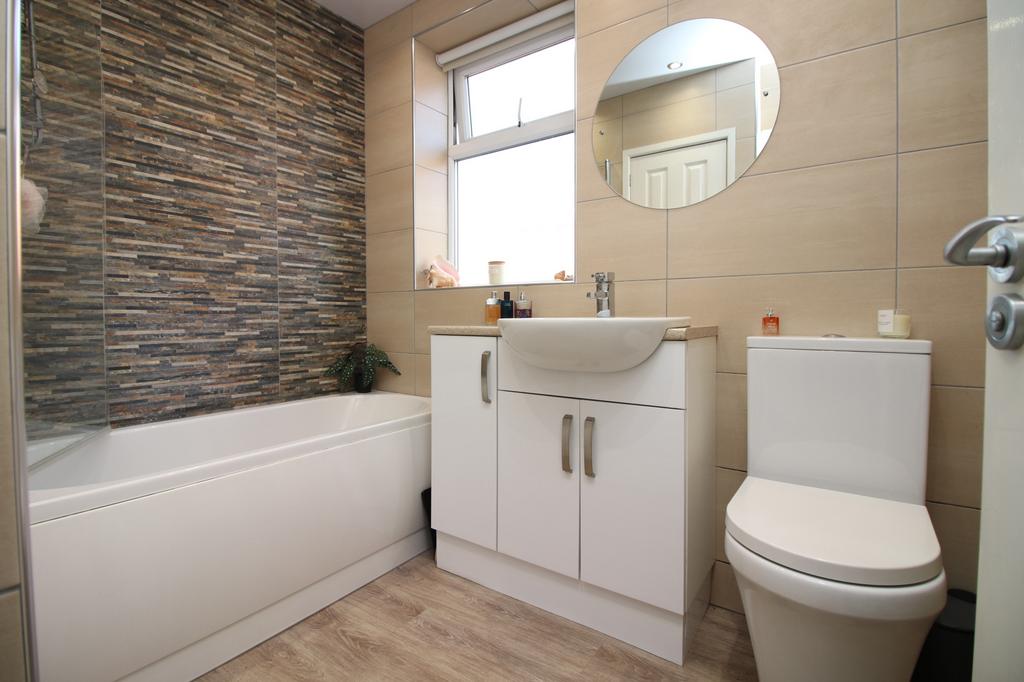 Landscaped rear garden with Indian Stone paving and lawn and beautiful well stocked borders. Well maintained fenced boundaries.