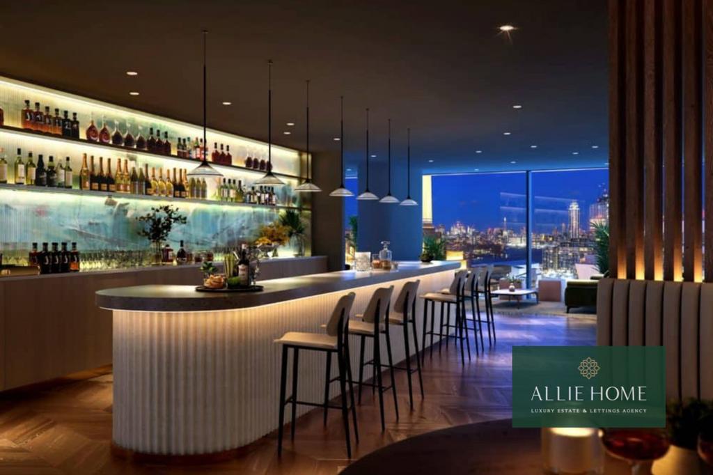 Residents benefit from exceptional amenities including a 24-hour concierge and security, an 8,500 sq ft private lounge and clubhouse with cinema and workspace, and a fully equipped residents’ gymnasium. The development also boasts one of the UK’s largest private roof gardens spanning 30,000 sq ft, as well as a stunning six-acre riverside public park — offering an unrivalled balance of relaxation and exclusivity.