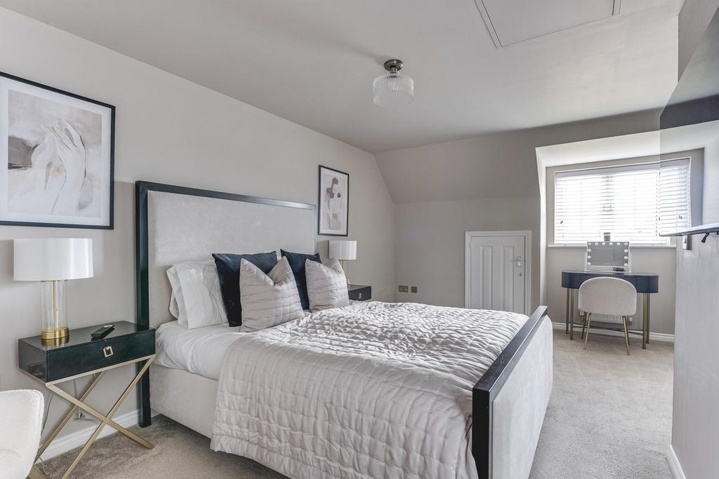 Abt. 19' 0" x 12' 5" (5.79m x 3.78m) An oversized principle bedroom with a luxury modern feel. Access to eaves and loft. Media points. Two radiators. Double glazed window to front. Carpet as fitted.