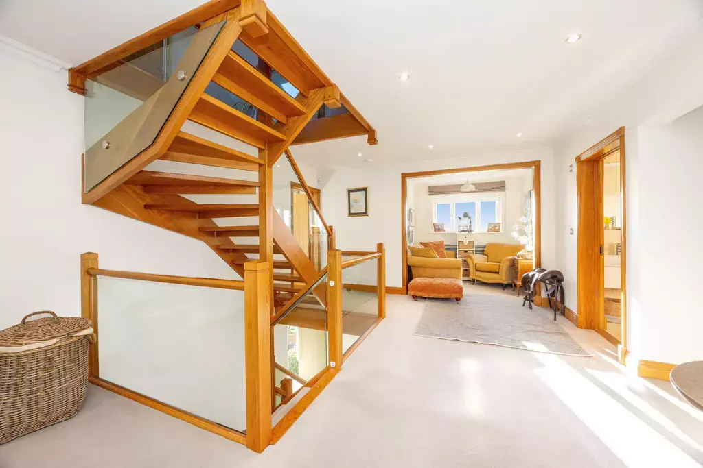 Built in 2010 to a high standard with quality fixtures and fittings throughout, the home welcomes you with a grand reception hall leading to elegant living and dining spaces, a dedicated study and a superb dining kitchen that flows into a cosy lounge area centred around a feature wood-burning stove. The ground floor also benefits from a versatile guest bedroom suite or family room, a shower room, a gym, a utility room, and a boot/plant room, ensuring the home functions effortlessly for busy family life.