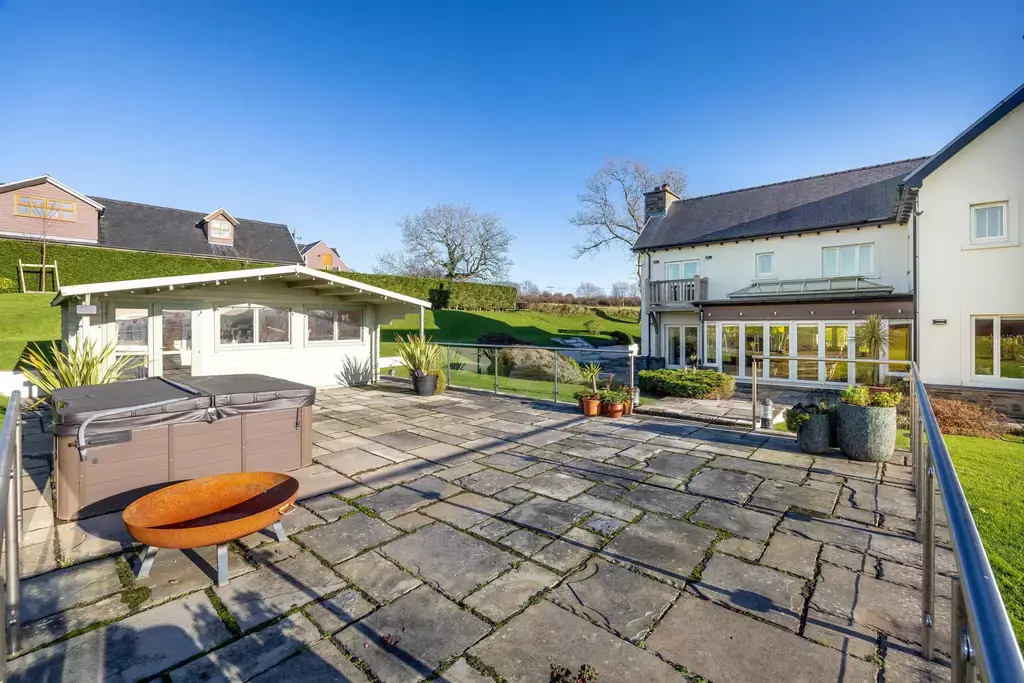 The grounds are a defining feature, with extensive lawns, large paved patio areas perfect for outdoor entertaining and a charming log cabin with power connected. Equestrian facilities are well catered for with two stables, three field shelters, a timber stable currently used as a garden store and superb grazing across the surrounding paddocks with water to each field supplied by auto-fill water troughs. A garage with mezzanine storage adds further practicality.