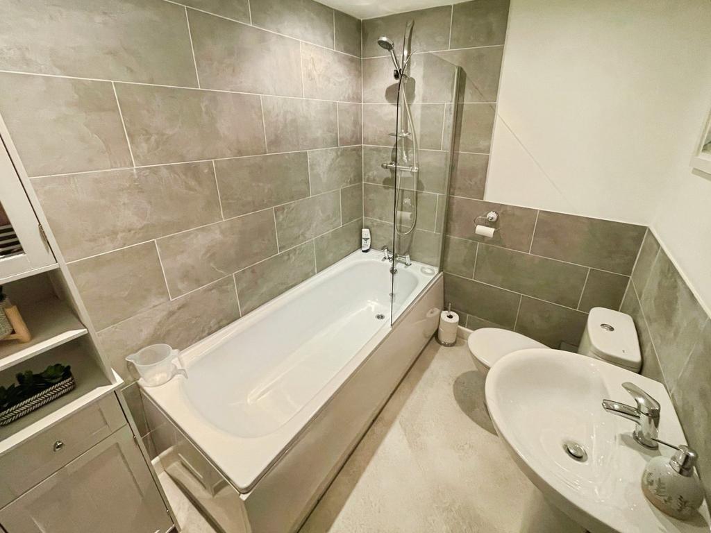 2.26m x 4.97m (7' 5" x 16' 4") Plastered and emulsioned ceiling with centre spot lights, plastered and emulsioned walls with tiling to the splash back areas in cream brick effect, skirting and vinyl flooring in wood effect. A range of base and wall units in wood effect with complementary roll top work surfaces. Inset stainless steel sink with chrome pull out mixer tap. Space for washing machine, tumble dryer and freestanding fridge/freezer. Integrated electric oven and four ring electric hob. Integrated gas combination boiler, PVCu double glazed window overlooking the rear of the property and radiator. Frosted PVCu double glazed door leading out to the rear garden.