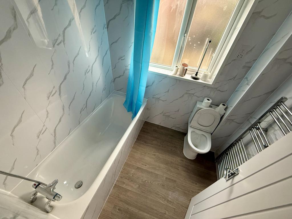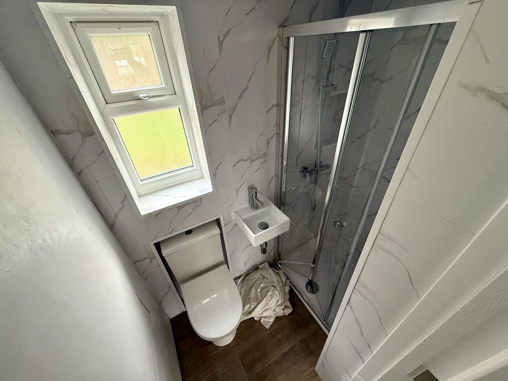 The property boasts a bright and modern reception room that flows seamlessly towards the rear garden, providing an inviting communal space perfect for relaxation or socialising. The brand-new kitchen is fully fitted with contemporary units and appliances, offering a clean and functional area for shared cooking and dining. Every aspect of the home has been newly upgraded, including flooring, décor, bathrooms, and fixtures, ensuring a fresh, stylish, and maintenance-free move-in.