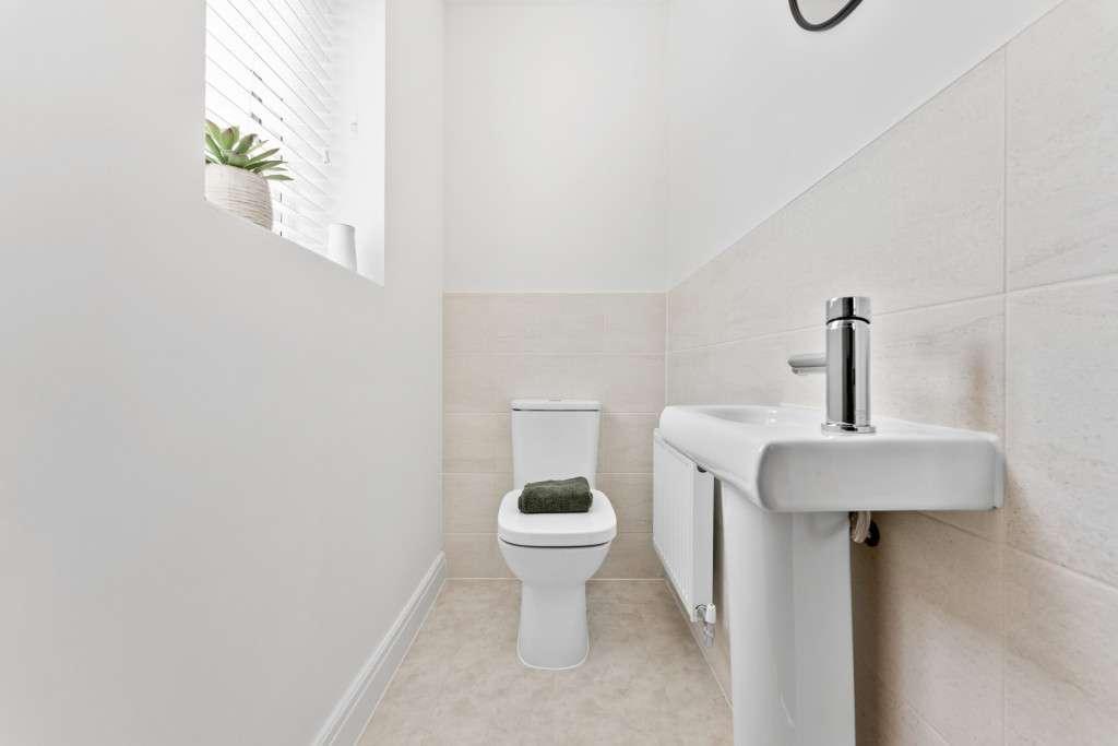An open plan kitchen/dining room is at the rear of the property with french doors leading to the garden. This open plan layout makes spending time with the family easy. You can keep a watchful eye on homework duties, while catching up over a cuppa with friends and family. You’ll also find access to your garden through a set of french doors, creating a light, bright and airy home. The downstairs cloakroom is a great addition, especially when you have guests.