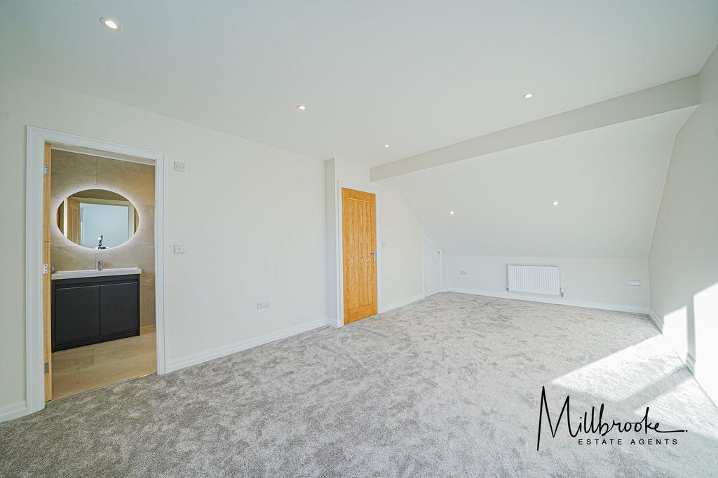On the first floor, to the front elevation is a large second double bedroom with a bay window, to the rear elevation is the third double bedroom with views over the garden, and a fourth single bedroom/study to the front elevation. The spacious bathroom boasts a luxurious four-piece suite with a large walk-in shower, bath, wash hand basin with vanity, and a W/C. Off the landing are stairs leading to the second floor, where the large master suite is located. This vast room offers a wealth of space with access to a loft storage cupboard and an elegant en-suite shower room.