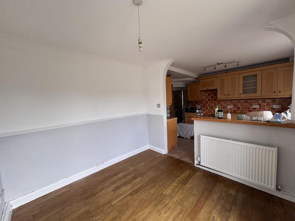 The property offers spacious accommodation throughout. The entrance hall leads into a living room, with the open-plan kitchen and dining area including an adjoining utility space. French doors from the dining area open onto a patio and lower garden. Upstairs, there are two double bedrooms, one single bedroom, and a family bathroom with a bath and overhead shower. A loft room provides useful additional storage. The home also features Gas Central Heating, a driveway for one car. Pets will be considered. This is a non-smoking property.