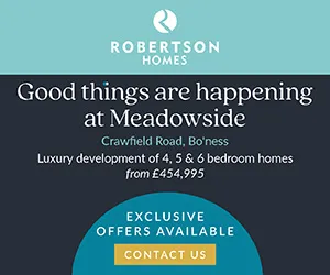 Robertson Homes at Bo'ness is an exciting new development in the coastal town with a selection of 109 luxury four, five and six bedroom detached homes. The development is on the south edge of Bo’ness in an elevated position, benefiting from beautiful views over the River Forth towards The Forth Bridges. Just over two miles from the development is the town centre, with a great choice of shops and amenities including independent boutiques, fish and chip shops, ice cream parlours, bars and restaurants. Bo’ness itself carries a lot of history. It’s home to The Hippodrome – Scotland’s oldest cinema. The preserved Bo’ness and Kinneil Railway museum is Scotland largest and offers steam train rides from Bo’ness to Birkhill. 15th century Blackness Castle is found on the coastline offering breath-taking views over the River Forth. For leisure, there’s open spaces for walking, running and cycling at Kinneil Estate and the historic Kinneil House – the grounds are free to visit all year-round. West Lothian Golf Club is arguably one of the most scenic courses for golfing enthusiasts with spectacular views across the River Forth. The development is ideally placed for commuters with excellent road links throughout Central Scotland and to Edinburgh and Glasgow via the M8 and M9 motorways, while Linlithgow train station is just over three miles away and Edinburgh Airport is only 12 miles away.