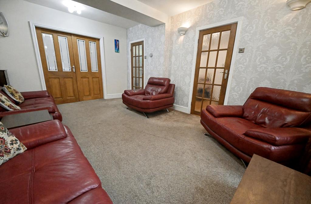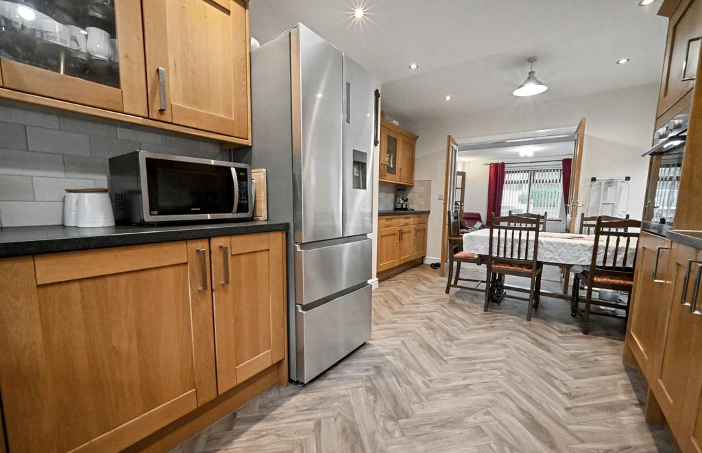 - 16ft living room with double doors to the extended breakfast kitchen, fitted with a matching suite of laminate units and a separate sitting/ dining room