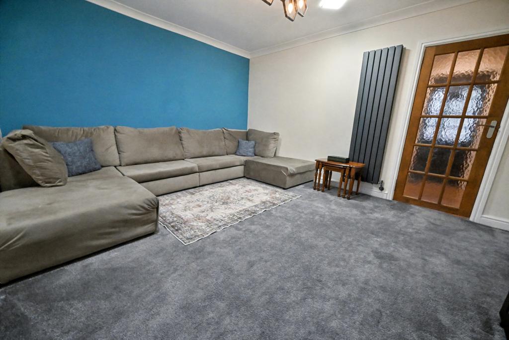 Sitting/ Dining Room: 14ft (4.27m) x 12’1’’ (3.68m) Graphite vertical radiator, coved ceiling and access to entrance hall, living room and bedroom four.