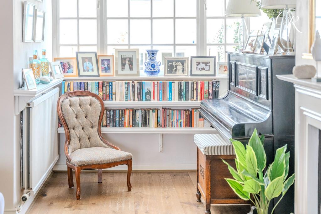 Kitchen-Breakfast Room: With wood effect flooring that flows into the rest of the living spaces, the very well-appointed kitchen-breakfast room offers a range of white, fitted wall and base units with marble worktops and upstands, wine racks, and a one-and-a-half bowl sink with a cutaway draining board. Integrated appliances include a double oven, a gas hob with an extractor hood within an original fireplace, a fridge-freezer, and a dishwasher. At the same time, the breakfast bar at one end of the room adds a sociable touch.