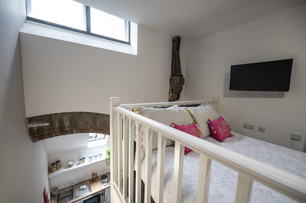 Each room is split across two levels and features a double bed, 2-seater sofa, a TV, study area with chair, kitchen with hob, microwave and fridge with freezer compartment, and en-suite shower room.
