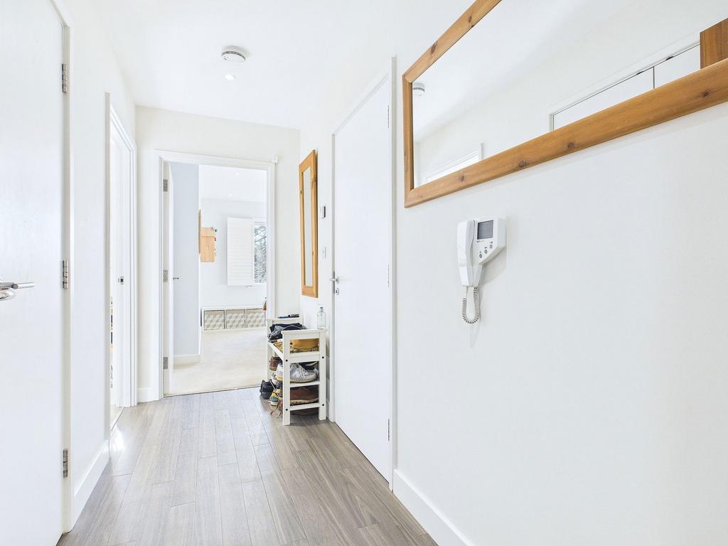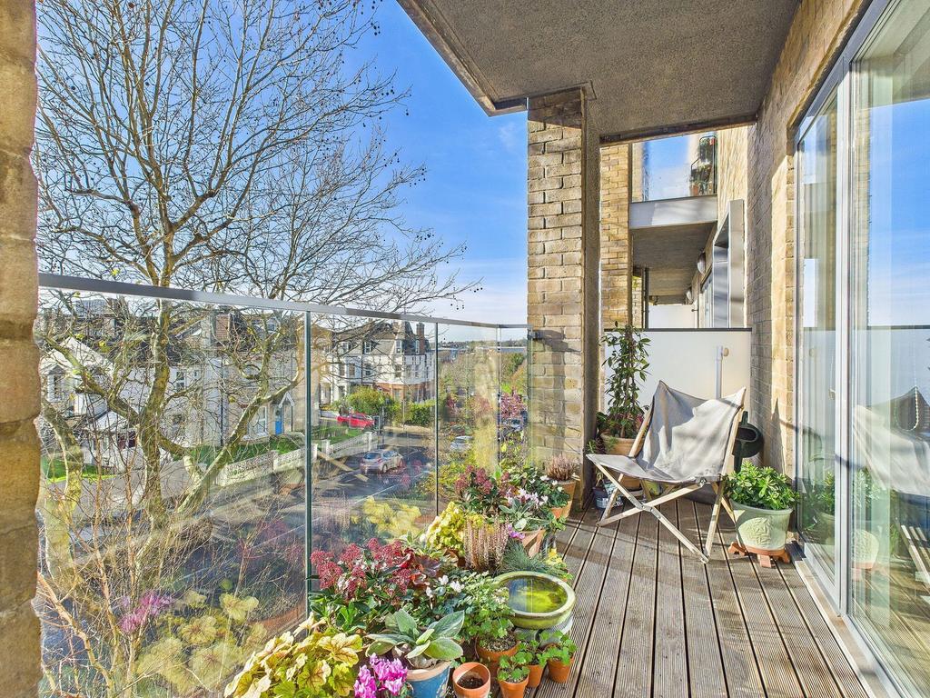 A welcoming entrance hall provides access to a useful utility cupboard, ideal for keeping everyday essentials neatly tucked away. The bright and spacious open plan living, dining and kitchen area forms the heart of the home, featuring sleek modern fittings and ample space to relax or entertain. Double doors open onto a south facing balcony, creating a lovely spot to enjoy the sunshine and extending the living space outdoors.