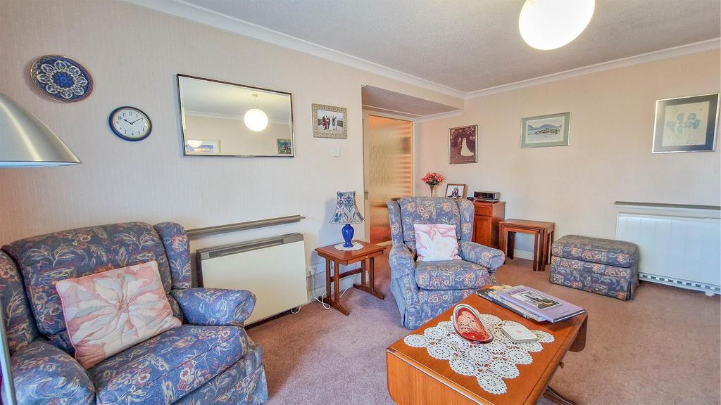In more detail the property features a well maintained communal entrance hallway which opens to an inner reception hall with built in storage. The bright, spacious west facing lounge has a set of glazed patio doors which open to a broad covered balcony. The kitchen is fitted with a range of wall and base units with fridge/freezer, oven and washing machine that may be included in the sale. A serving hatch from the kitchen opens to a formal dining room which is also accessed from the reception hallway. This room could form a further bedroom or living room as required.