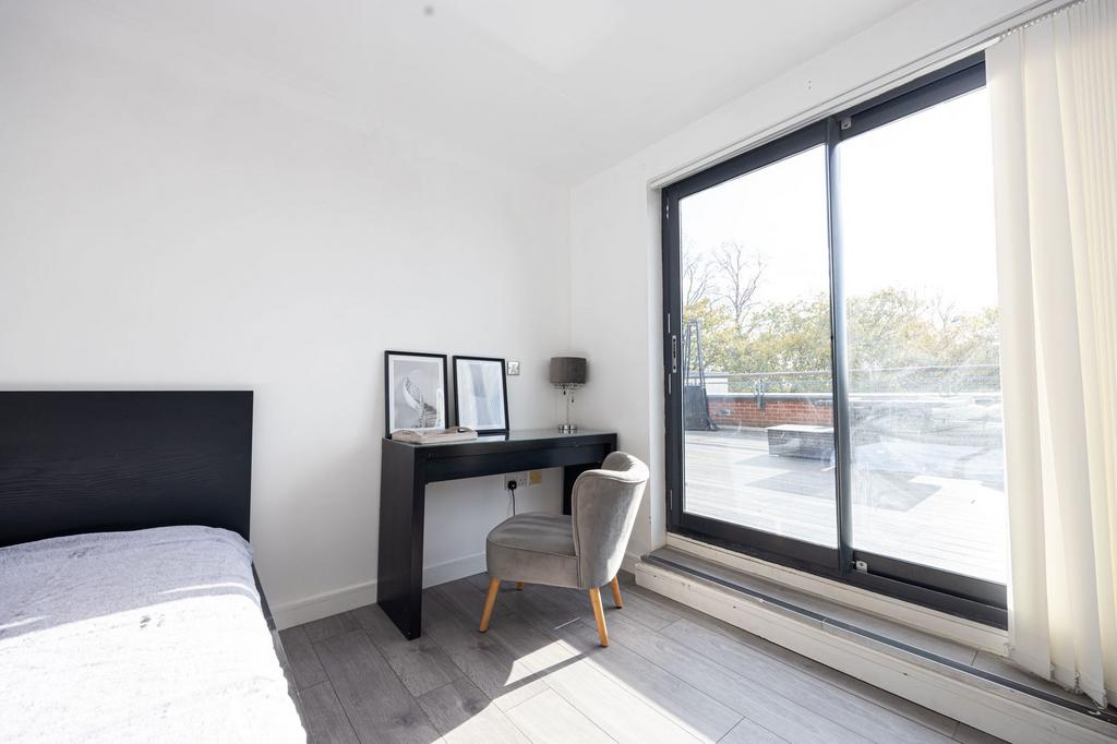 The contemporary bathroom is finished to a high standard, and the apartment’s clever design ensures excellent storage, natural light and a calm, elevated feel throughout. Being on the top floor also brings added privacy, quieter living and open views across South Manchester.