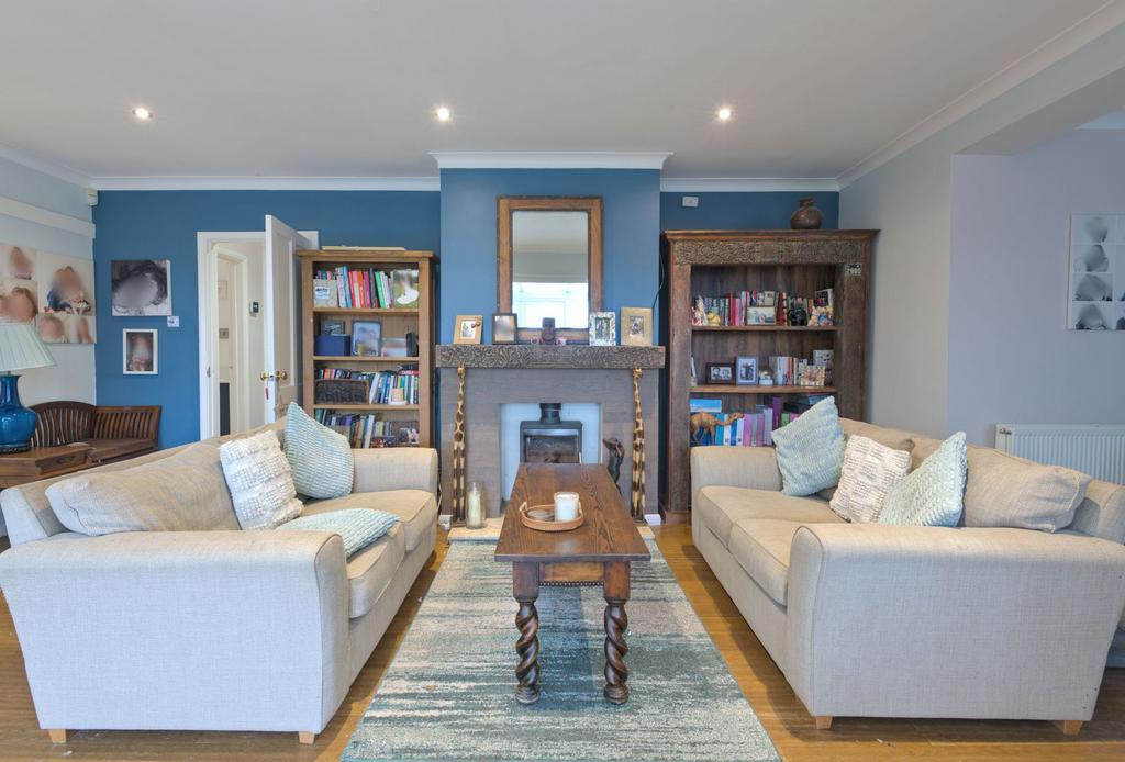 Stepping through the enclosed porch – perfect for coats, shoes and everyday essentials – the spacious entrance hall creates an immediate sense of warmth, with wooden flooring and soft neutral tones establishing the home’s calm and welcoming atmosphere. The downstairs has a superb flow, with a largely open-plan layout that lends itself perfectly to entertaining and family living.