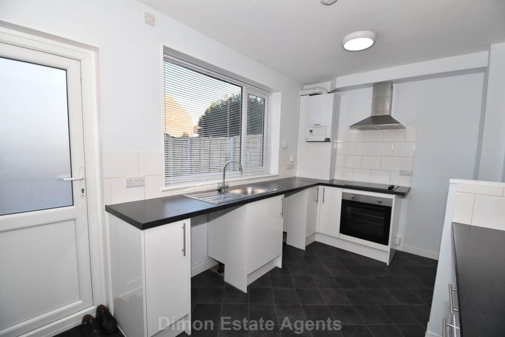 Single drainer stainless steel sink unit, wall and base cupboards with worksurface over, built in oven and 4 ring electric hob with cooker extractor canopy over, recess for fridge/freezer, plumbing for washing machine and dishwasher, space for additional appliance, tiled splashbacks, PVCu double glazed window, door to garden, wall mounted Vaillant gas central heating boiler, tiled splashbacks.