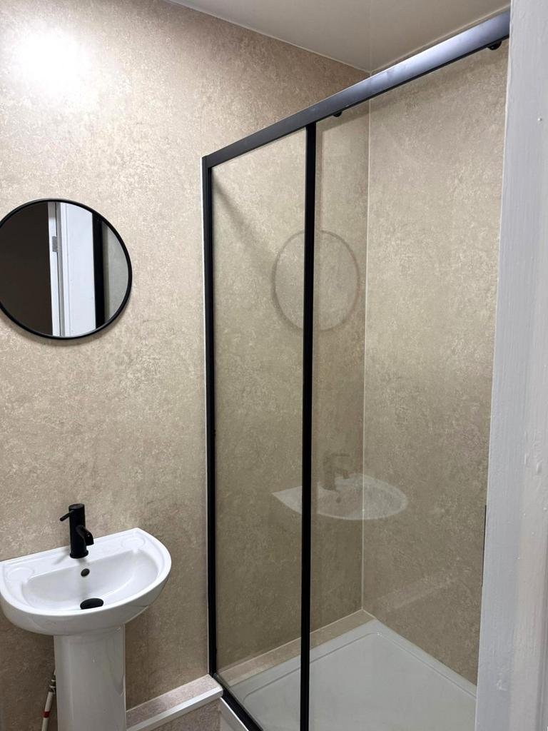 The bathroom offers a sleek walk-in shower and contemporary fittings. Property also includes integrated appliances such as washing machine and fridge freezer. Electric heating.
