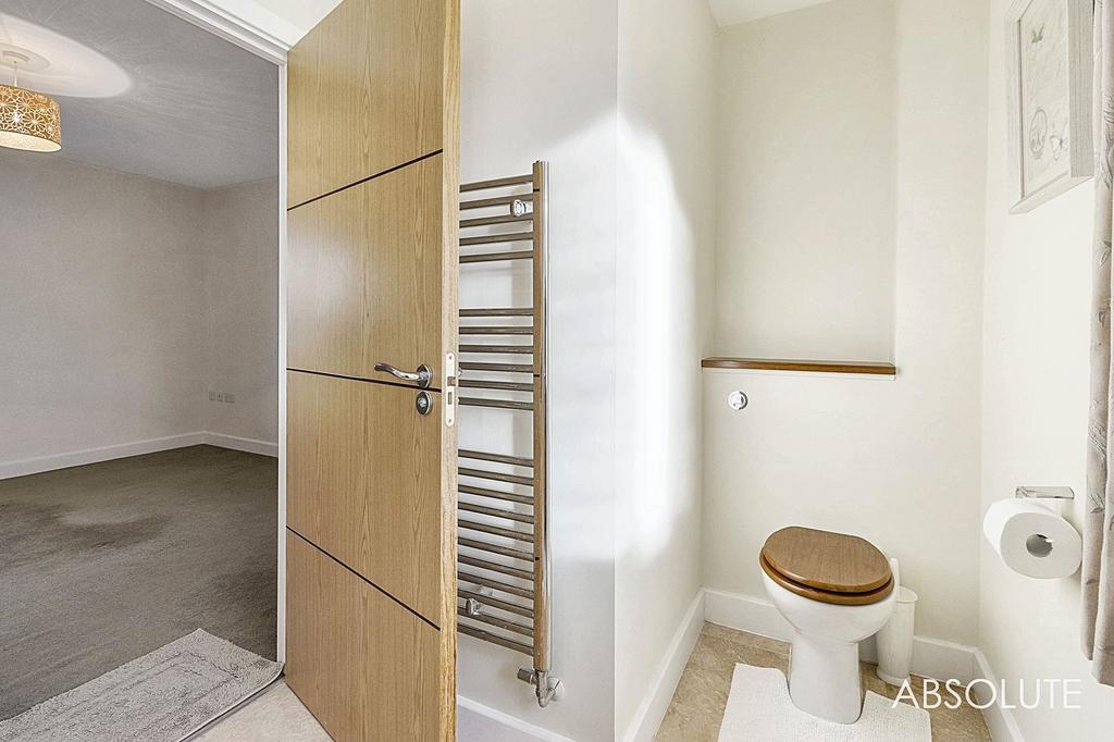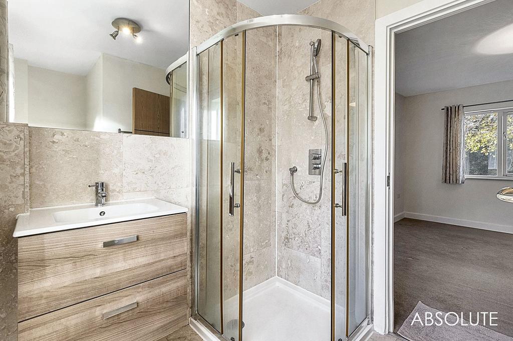 Bedroom two is another excellent double with rear aspect window and its own en suite, comprising a walk-in corner shower with thermostatic shower, wall-hung vanity basin and WC with concealed cistern. Bedrooms three and four are both generous doubles, enjoying outlooks over the rear garden and surrounding greenery, with bedroom three also having a side window and access to a large, boarded loft for additional storage. The family bathroom is well appointed with a panelled bath and hand-held shower, wall-hung sink, WC with concealed cistern and obscured double-glazed window.