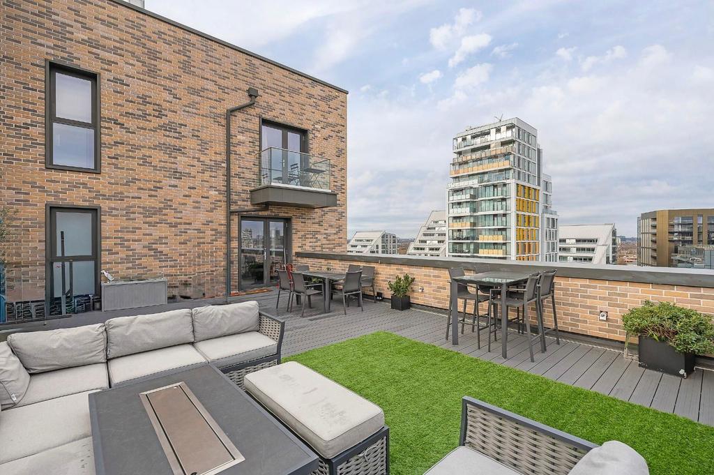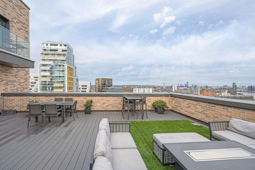 Up on the 12th floor is a large communal roof terrace with far reaching views across the river, towards the City and beyond. There is also a residents communal garden on the 2nd floor.