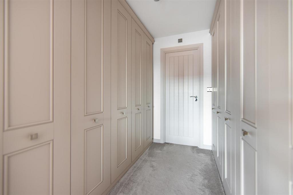 Ascending the staircase, you reach a spacious landing that serves as the central point for all four bedrooms and the family bathroom. The principal bedroom is an exquisite retreat immaculate, generous in scale, and filled with light thanks to its large bay window fitted with plantation shutters. Soft neutral tones and plush carpet give the room a boutique hotel feel. The suite includes: a walk-in dressing area and a luxurious en-suite shower room.
