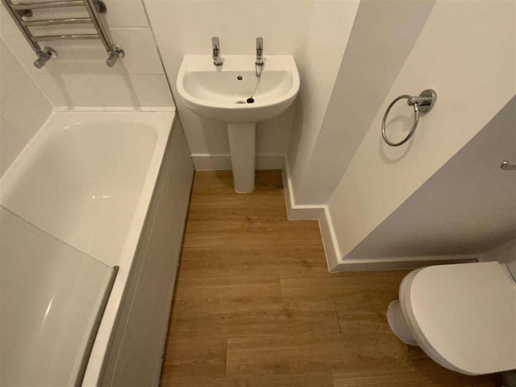 Bathroom.. - Fitted with white suite comprising panelled bath with shower screen to side, pedestal wash hand basin, low level close coupled WC, chrome ladder style heated towel rail.