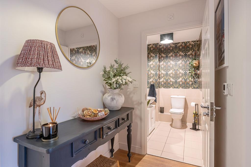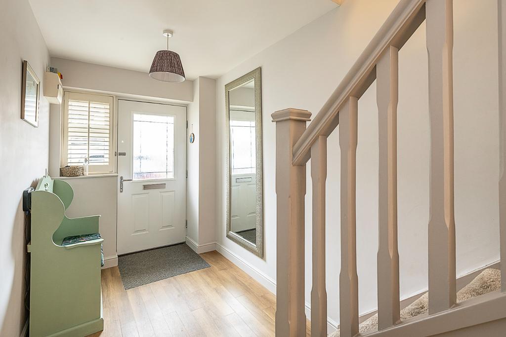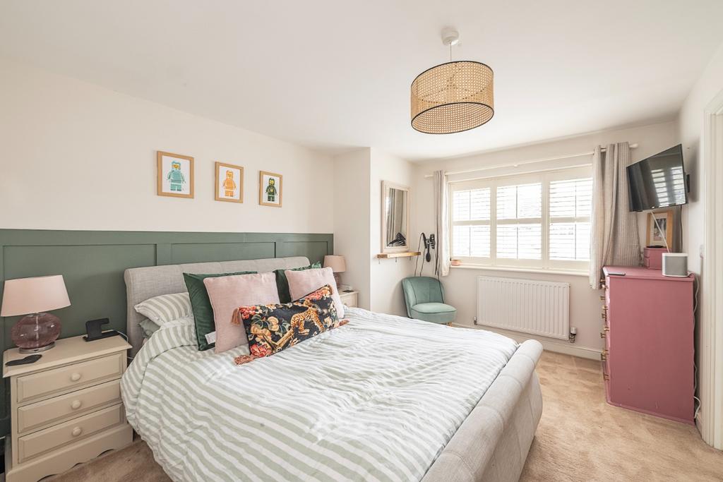The first-floor landing has a side-aspect window providing natural light, access to the loft space, and doors to all rooms. There are three bedrooms, with the main bedroom benefiting from fitted wardrobes and a stylish ensuite shower room. Bedroom two also features built-in wardrobes, while the third bedroom is a well-sized single or ideal home office. A modern family bathroom services the remaining bedrooms.