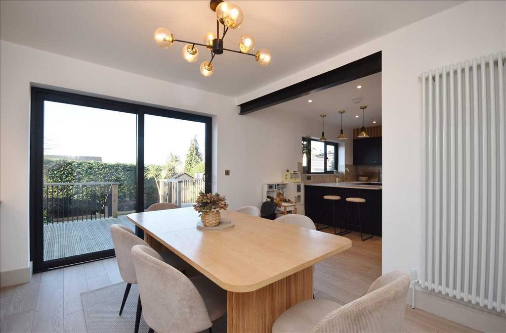 Double glazed patio doors leading to rear decking. Vertical radiator. Built in units to either side of chimney breast, one containing wine fridge. Open access to: