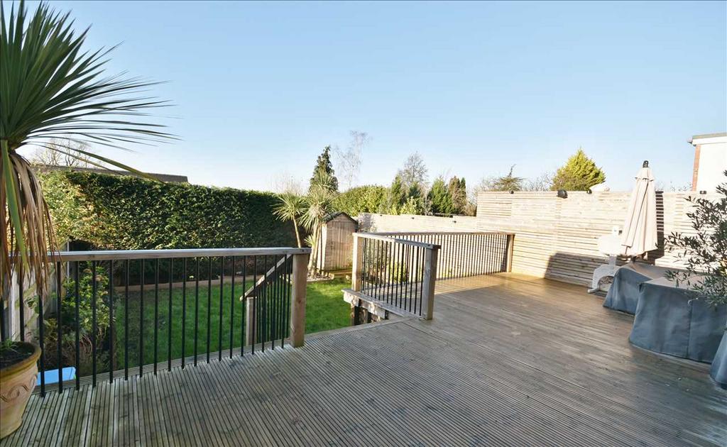 Walled garden to front with tarmacadam and block paved driveway and hardstanding. Gravelled garden area with mature tree and established planting. Larger private garden to rear with timber fencing to two sides, lawn, borders, large area of timber decking which is ideal for outside dining and entertaining, garden shed and mature hedging to rear boundary. The rear garden faces west-southwest and therefore enjoys the afternoon and evening sun.
