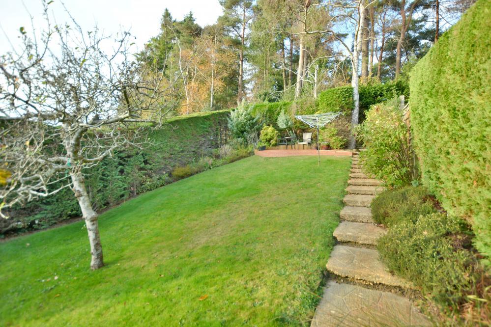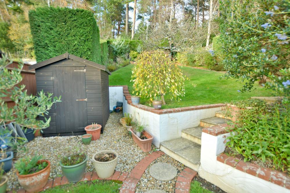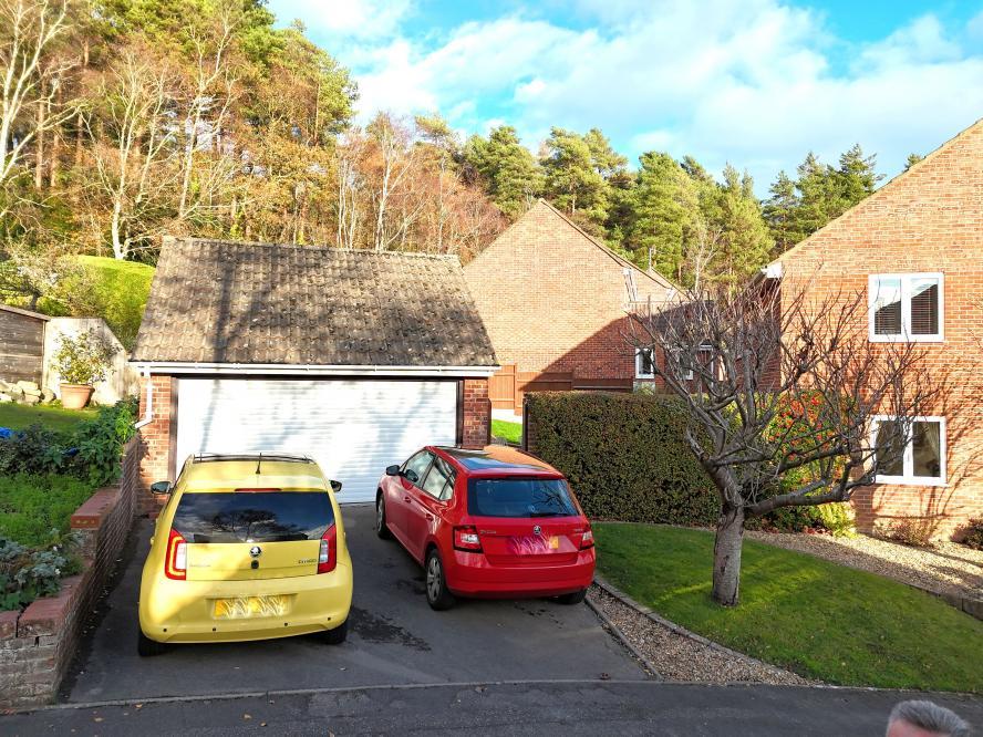 •Outside: off-road parking leading to double garage with roller electric door. The garden is landscaped, with patio areas ideal for alfresco dining and large rear garden which is tiered with shaped lawn and an abundance of shrub/flower and tree borders, enclosed by high hedging and panel fencing and access gate at the rear leading onto woodland walks