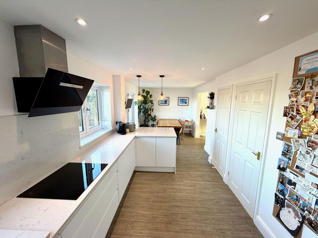 This home has been modified and modernised to deliver exceptional quality and size throughout - boasting masses of living space downstairs consisting of connected sociable living spaces for cooking, dining and lounging. The 4 bedrooms are great sizes with even the smallest of them being a generous and practical size. The living and sleeping spaces are supported by a family bathroom, an en-suite and also a downstairs WC. Ample storage is provided throughout with a variety of storage cupboards, built in wardrobes and a section of the original garage retained.