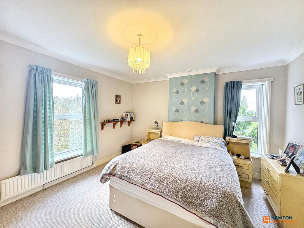 The first-floor accommodation comprises three well-proportioned bedrooms, each benefitting from attractive views. A centrally positioned landing provides access to a modern shower room, fitted with a walk-in tiled shower with glass screen, handrail, washbasin, and WC.