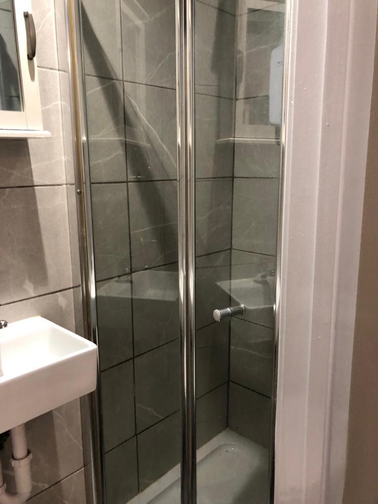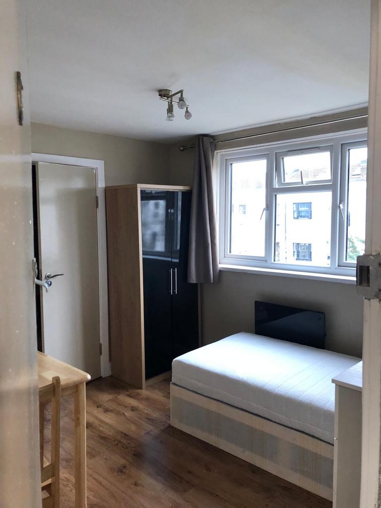 Second-floor studio flat with a shared main kitchen to let in London N16.