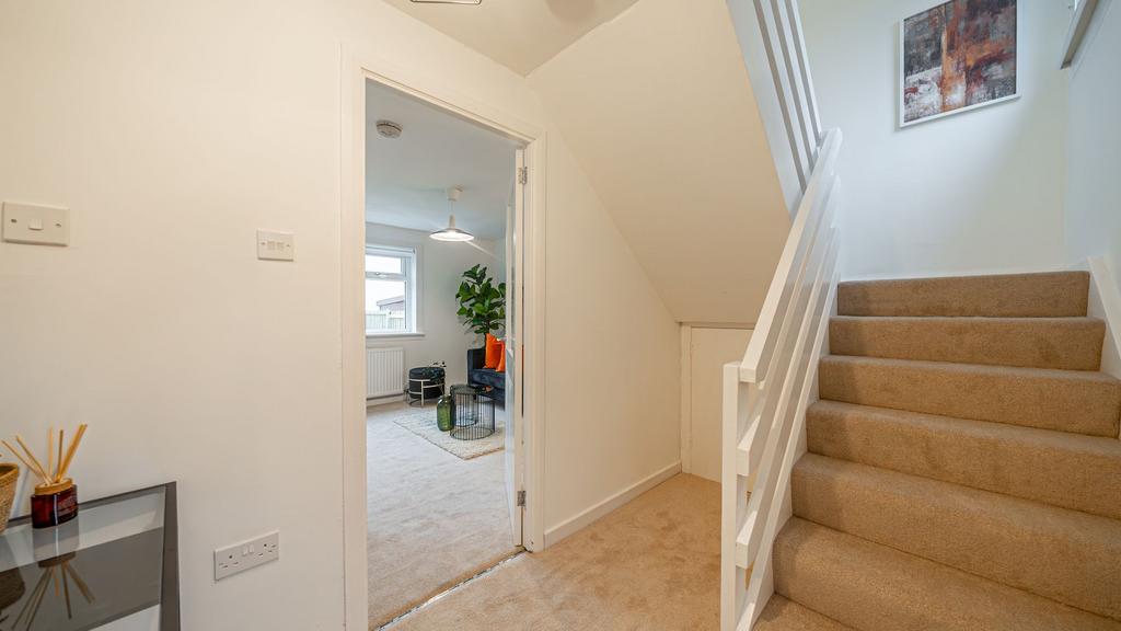 From the moment you step inside, the house feels instantly welcoming. The ground floor opens with a bright entrance hallway leading into a superb modern lounge, an inviting space ideal for relaxing or entertaining. This flows seamlessly into a recently refitted contemporary kitchen, thoughtfully designed with a sleek range of wall and floor units, integrated gas hob and electric oven, and a generous walk-in storage cupboard perfect for coats, shoes, household essentials or even a compact pantry.