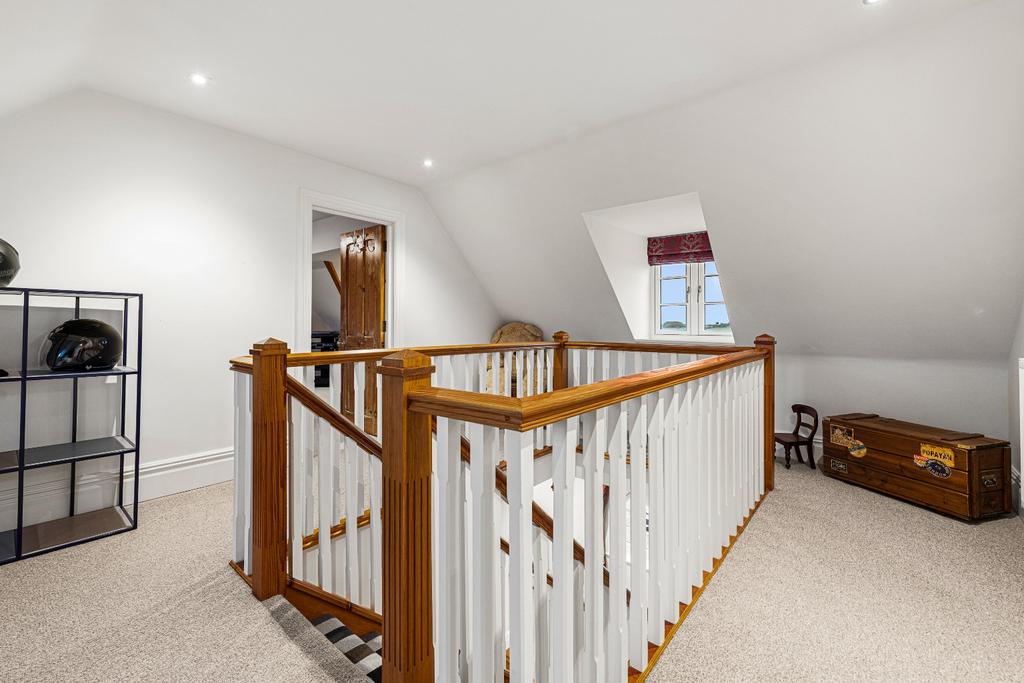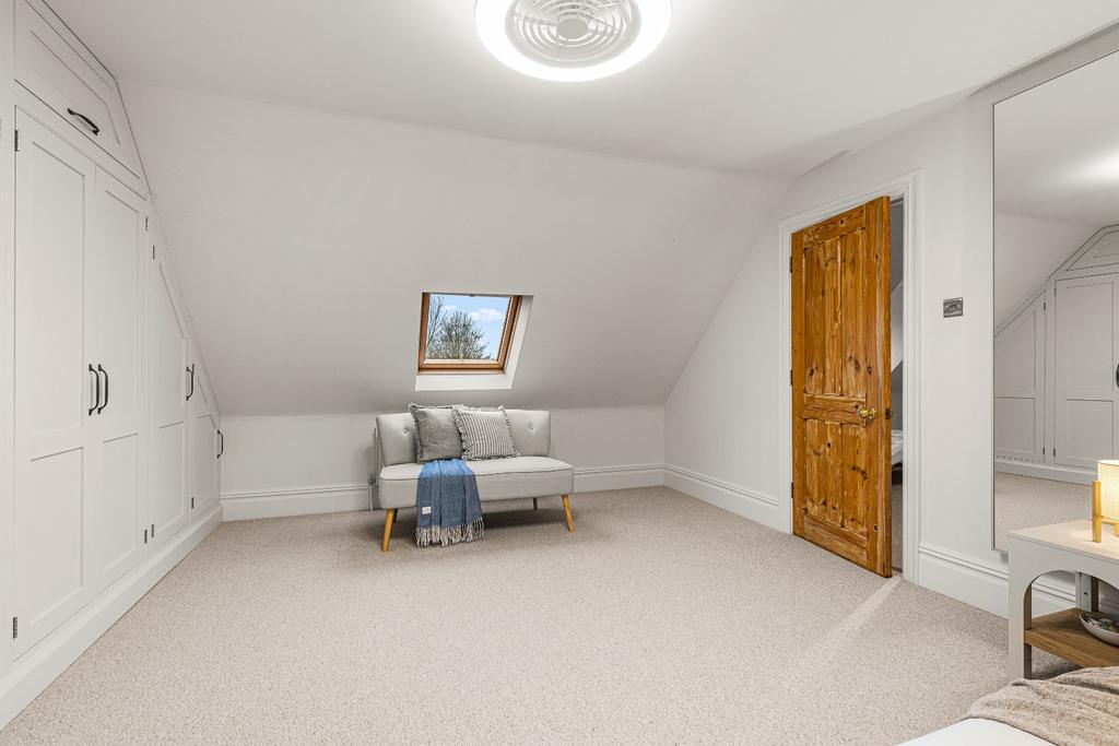 The top floor provides two further double bedrooms set under the eaves with built in storage and pleasant views, ideal for guests or older children.