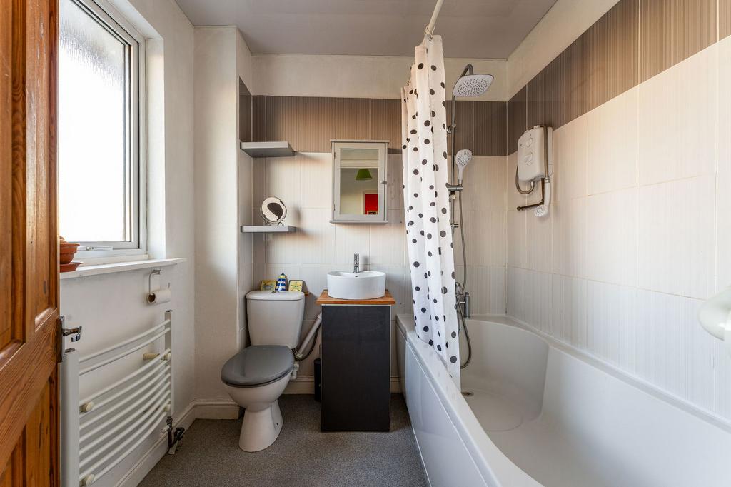 Fitted with a three-piece suite comprising bath with electric shower over, WC and hand wash basin.