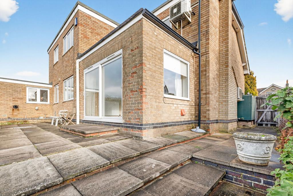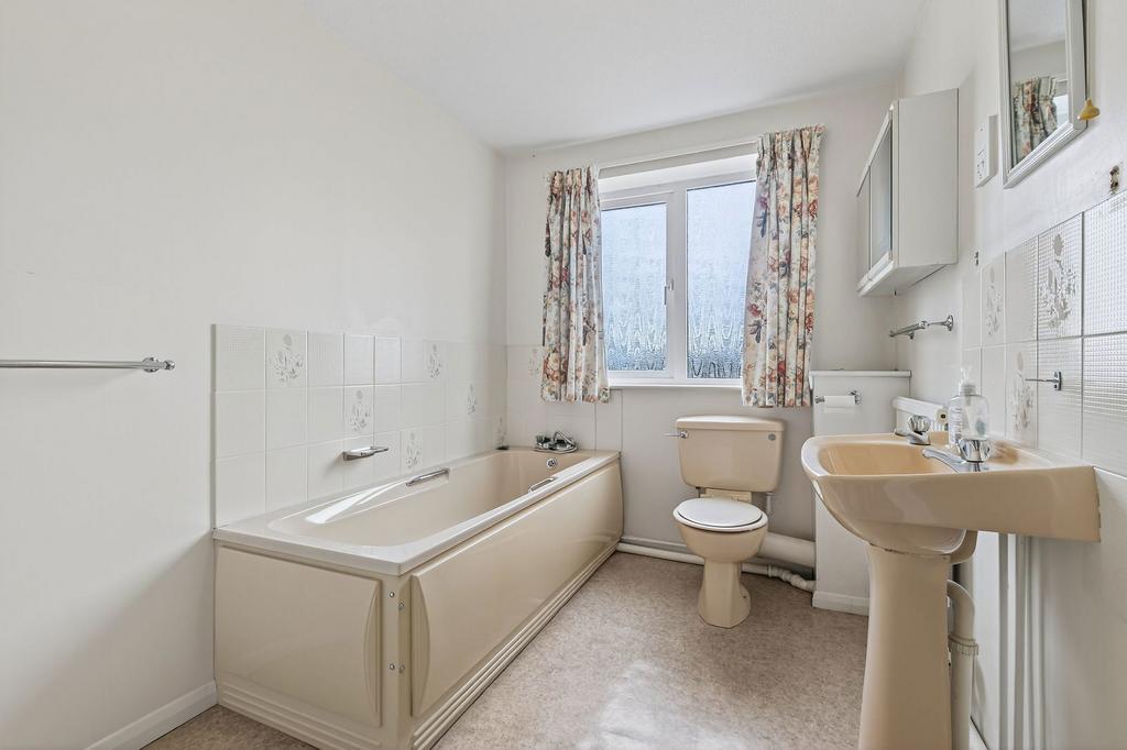 Situated within a sought-after cul-de-sac, the property is attractively set back from the road behind a charming low-level wall and a front garden planted with mature plantings and a pathway to the entry porch. A side driveway provides tandem parking for two vehicles and leads to a single garage and a door into the utility room.
