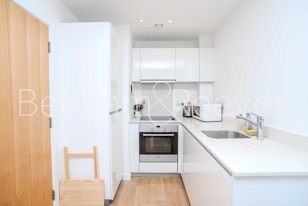Comprising a bright open plan reception with wood flooring and floor to ceiling windows leading to a private balcony, and a fully fitted modern kitchen with integrated appliances and white gloss cabinets, There is a good size double bedroom with built-in wardrobe for storage space, and a family-size bathroom with tiled walls, storage area under sink, large mirror and shower over bath and a separate storage room. Other benefits include wood flooring in the reception room and the entrance hallway. The property is offered on a furnished basis.