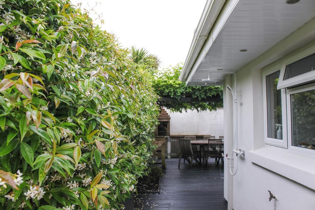Beautiful wrap around garden, including south/ west facing decked rear garden with pergola and bbq area, decked garden to the side plus lawned front garden with mature fruit trees and shrubs, outdoor shower, and pond.
