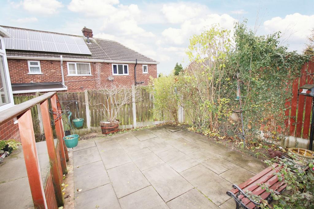 Low-maintenance gardens to the front, complemented by two driveways providing parking for several cars and leading to a rear garage. The rear garden features a spacious patio area and a lawn, offering an ideal space for relaxing or entertaining.