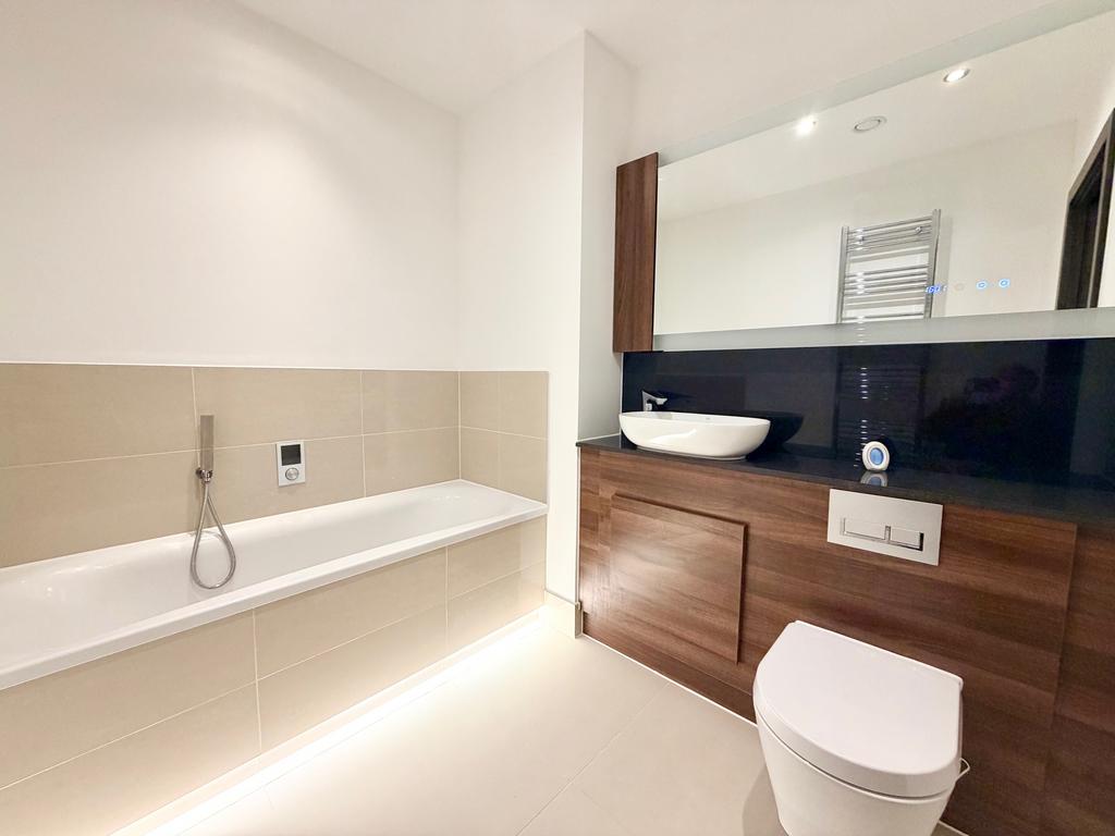 The property’s accommodation is thoughtfully laid out, offering an open plan feel that maximises living and entertaining spaces. Both bedrooms are well-proportioned, with the principal bedroom benefiting from an en-suite bathroom, while a further stylish bathroom serves the second bedroom and guests. Electric heating throughout ensures efficient warmth and comfort.