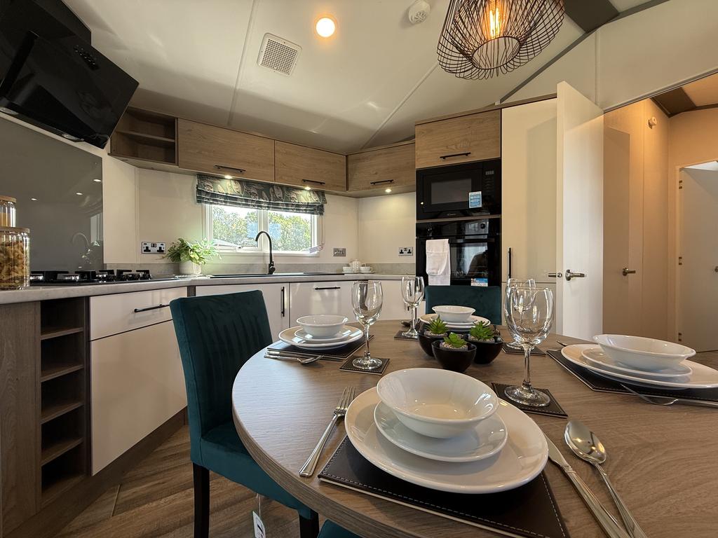 - Step into a bright and inviting interior thoughtfully designed with comfort and convenience in mind. The lodge boasts a spacious open-plan living area flooded with natural light, complemented by contemporary furnishings and meticulously maintained finishes. The fully integrated kitchen comes complete with high-quality appliances—including a washing machine and dishwasher—ensuring daily living is effortless from the moment you arrive. Both bedrooms are elegantly proportioned, providing ample storage and tranquil spaces to unwind, while two sleek, modern bathrooms add a touch of luxury to your everyday routine.