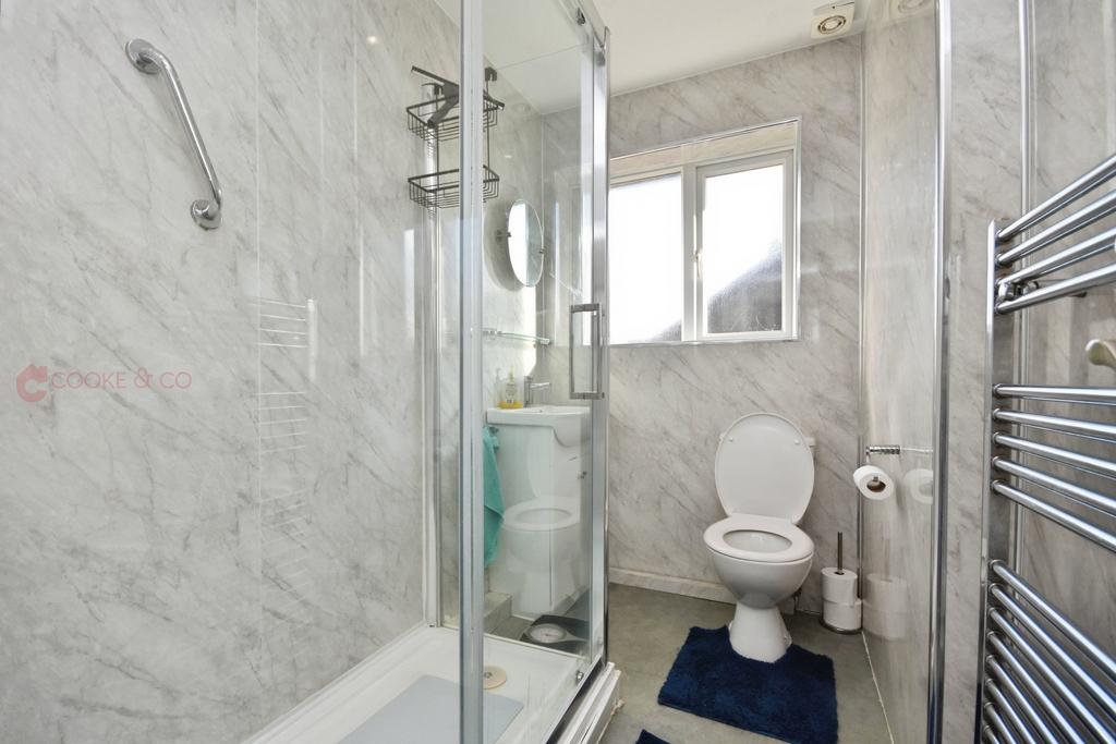 Double glazed window to side. Walk in shower, radiator, toilet.