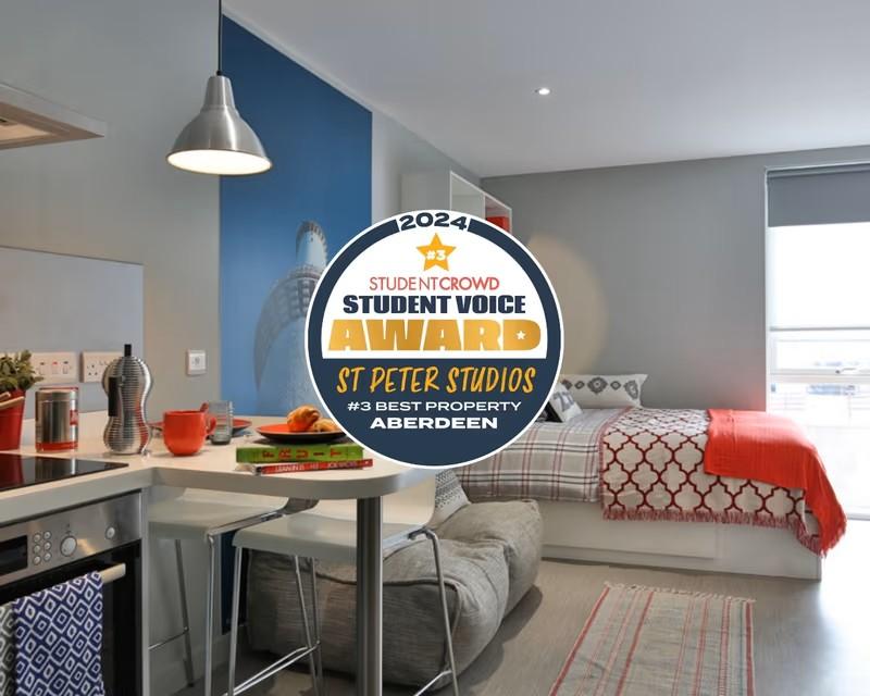 St Peter Studios is a cosy student accommodation in Aberdeen, offering a variety of Studio room types. Rooms are fully furnished with basic furniture and appliances. In contrast, communal facilities such as study rooms and cinema screenings are available in the communal areas of the flats to help students balance their study and recreational life. The apartments are within walking distance of the University of Aberdeen, saving students a lot of time on their commute. There are also a variety of supermarkets and restaurants within easy reach.