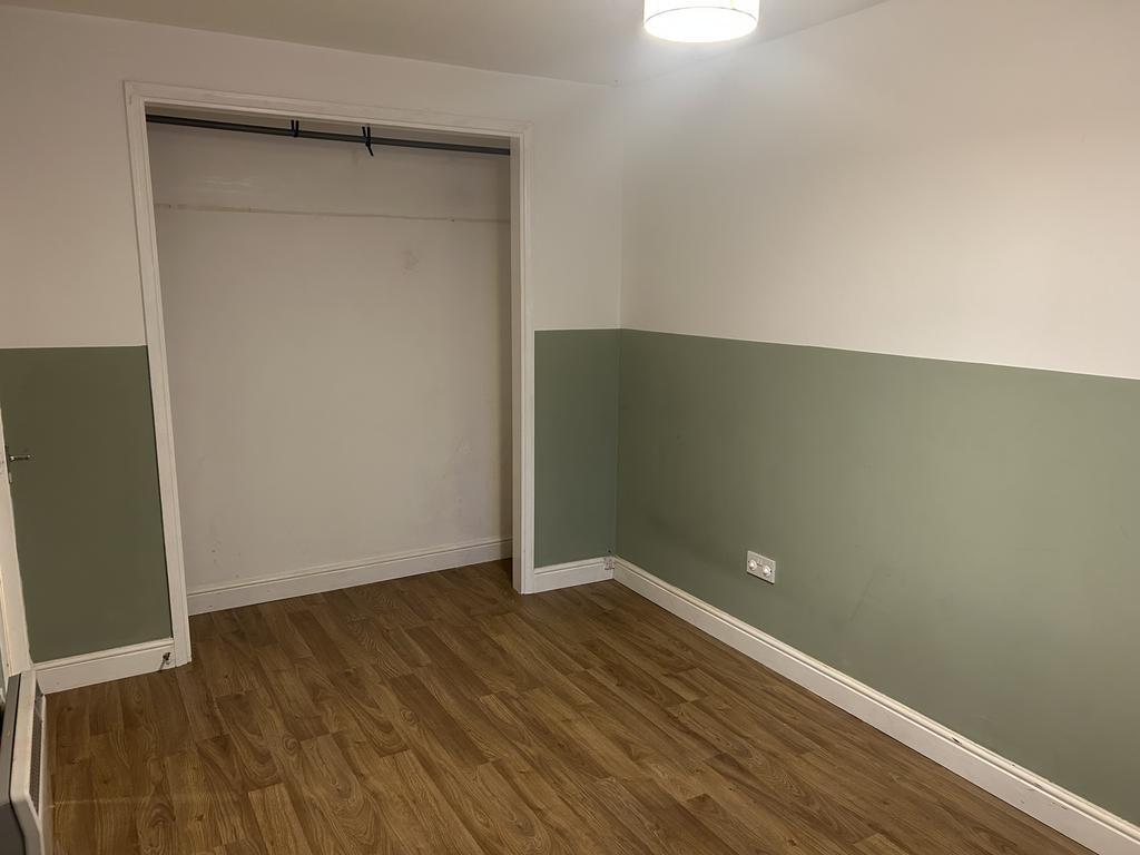Double glazed window to front aspect, laminated flooring, power points, storage heater, wardrobe space.
