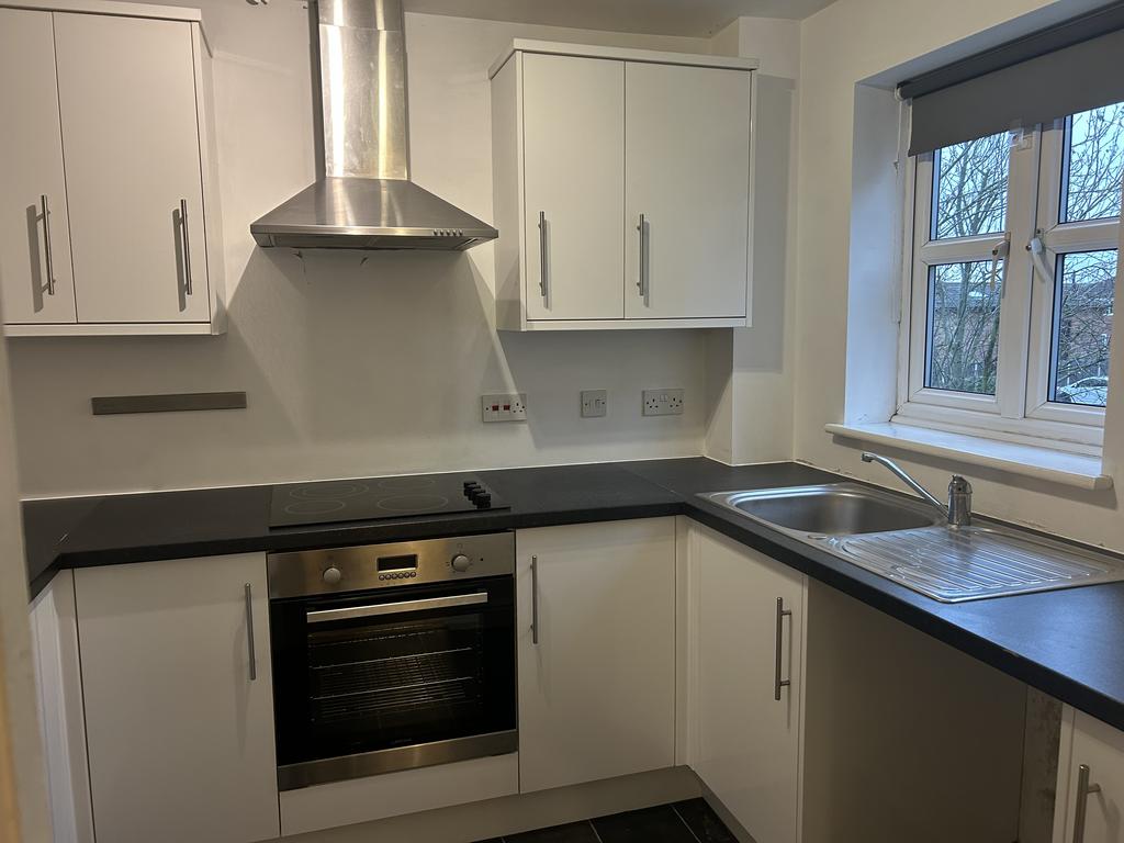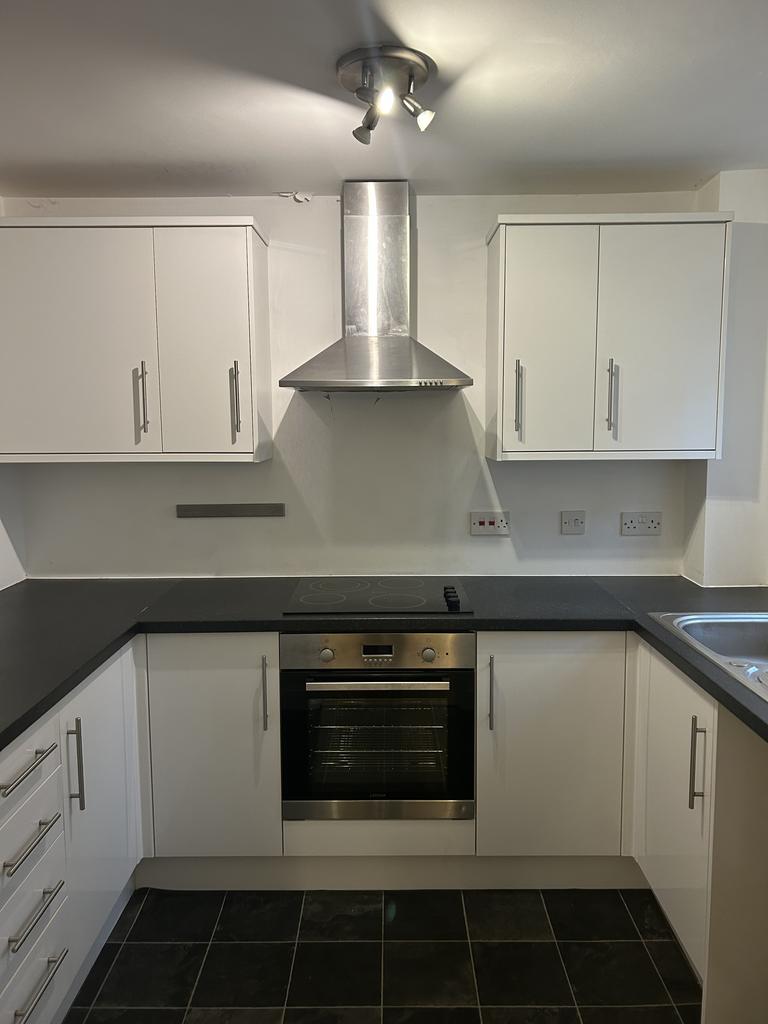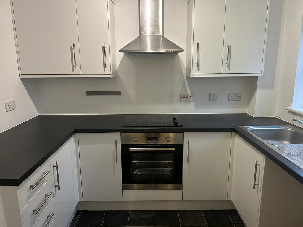 Double glazed window to rear aspect, Vinyl flooring, worktops, range of matching White high gloss base and eye level units, stainless steel sink unit with mixer tap, Electric oven and hob with stainless steel extractor fan over, space for fridge/freezer and space for washing machine, power points.