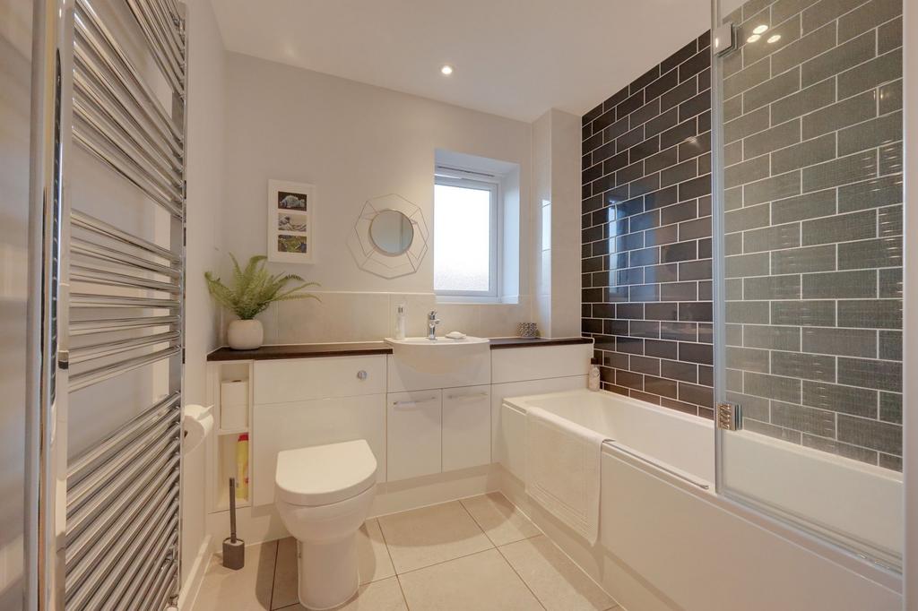 A particular feature is the generous dual aspect, modern open plan living/kitchen/dining room with far-reaching views across the development and a JULIET BALCONY. The kitchen has been fitted with dove grey units complemented with charcoal grey laminate worktops with integrated cooking appliances. There is ample room for a large table and chairs.